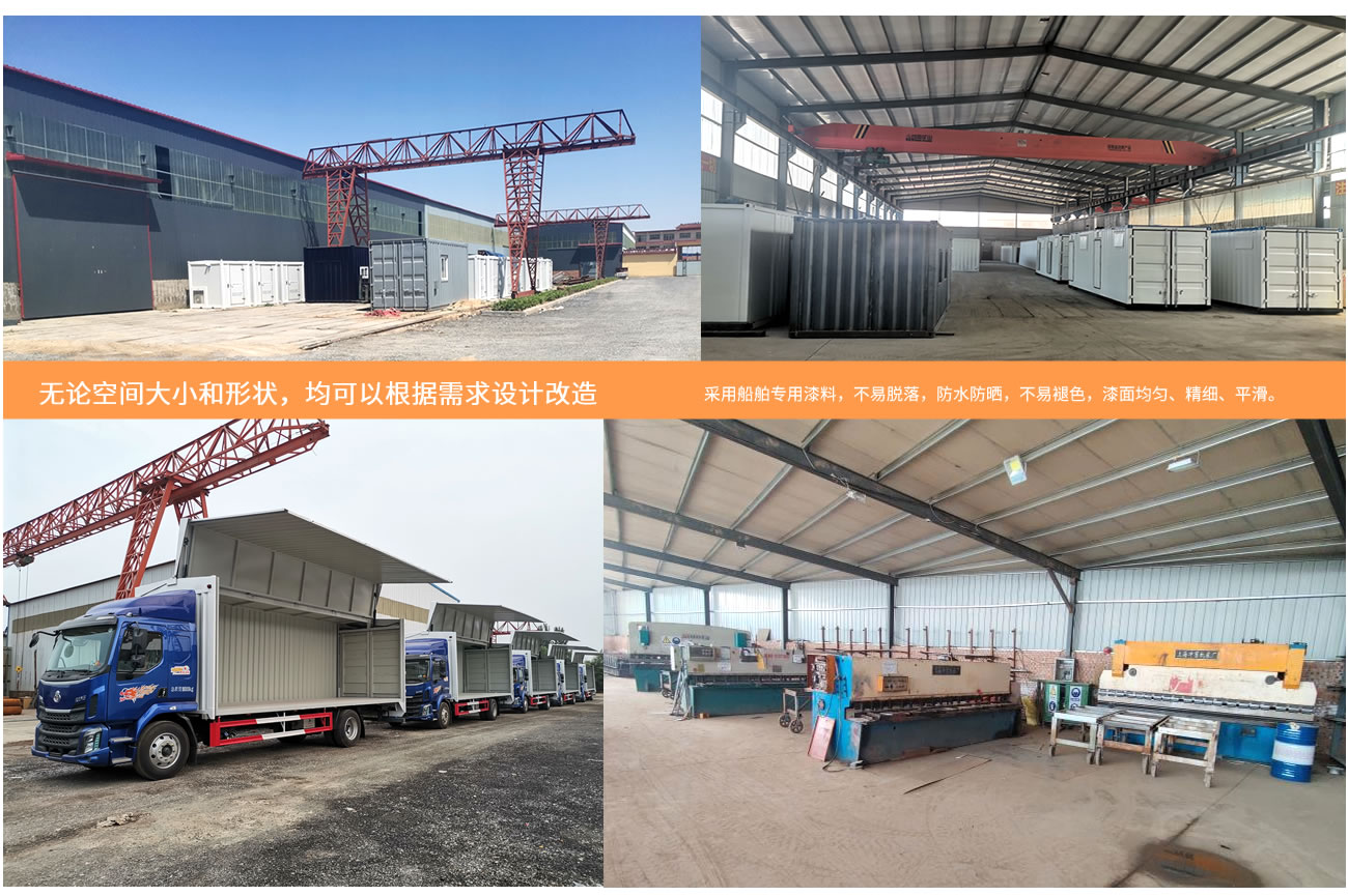 公司主要生產(chǎn)和經(jīng)營(yíng)特種集裝箱、展翼箱、電力設(shè)備箱、水處理集裝箱、定制方艙、野營(yíng)房、物流飛翼箱、非標(biāo)設(shè)備箱等。